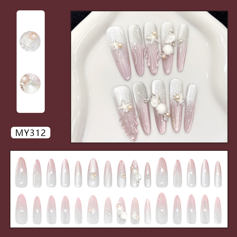 TEMU 30개입 3D 고양이 눈 네일 팁 | 간편한 프레스온 인조 손톱, 재사용 가능, 별과 그라데이션 패턴, ABS 소재, 긴 아몬드 모양 손톱