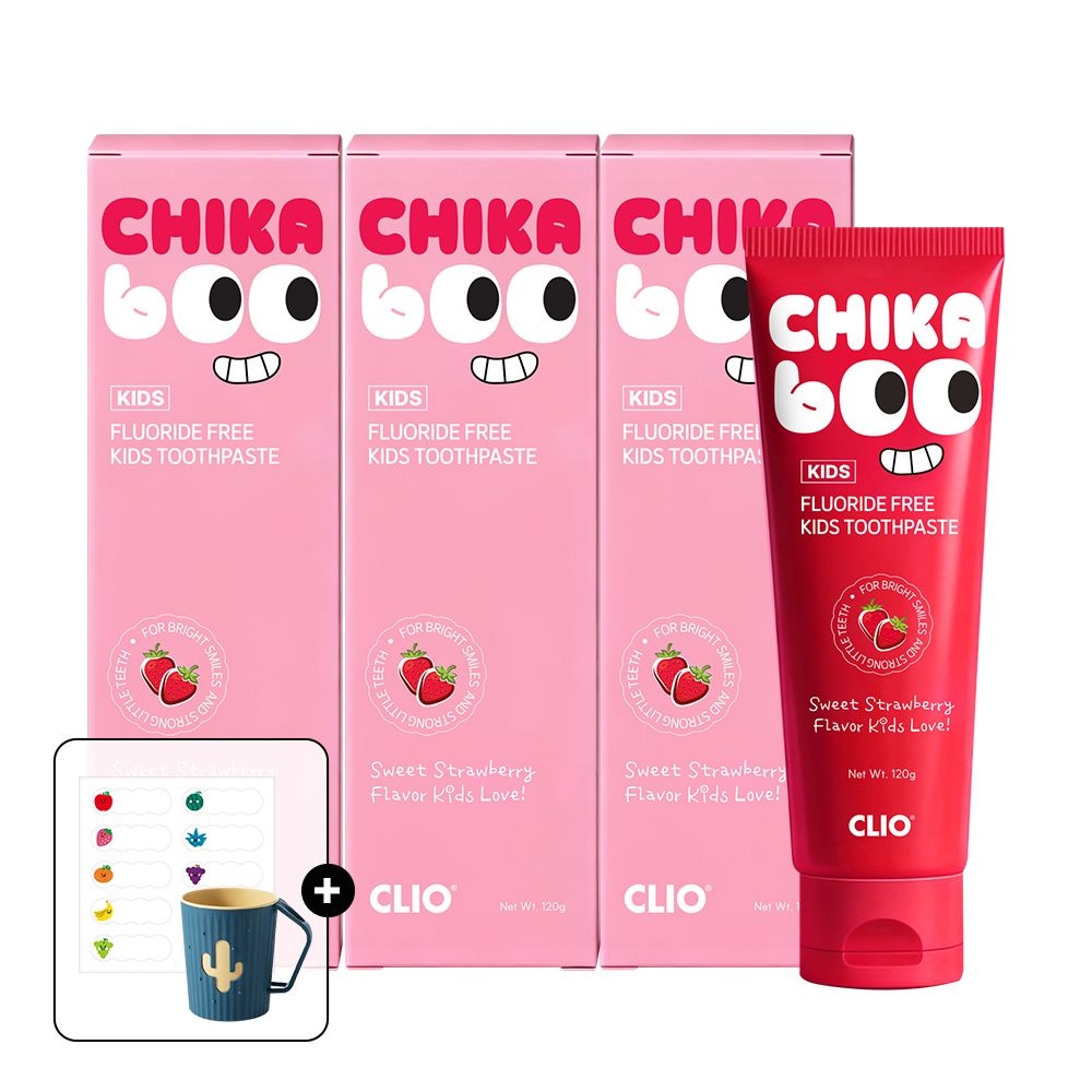 크리오 치카부 무불소 어린이 치약 딸기향 120g 3개+네임스티커+양치컵 증정