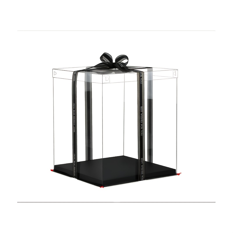 TEMU 블랙 1개 투명 대형 선물 상자, 리본 포함, 선물 운반용 PET 웨딩 보관 용기, 파티 생일 디저트 디스플레이용 투명 선물 상자