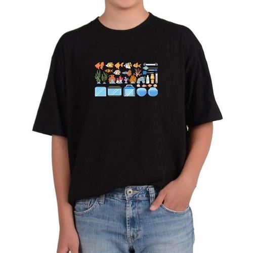 반팔티 열대어 어항디자인 산호모형 프린트티셔츠