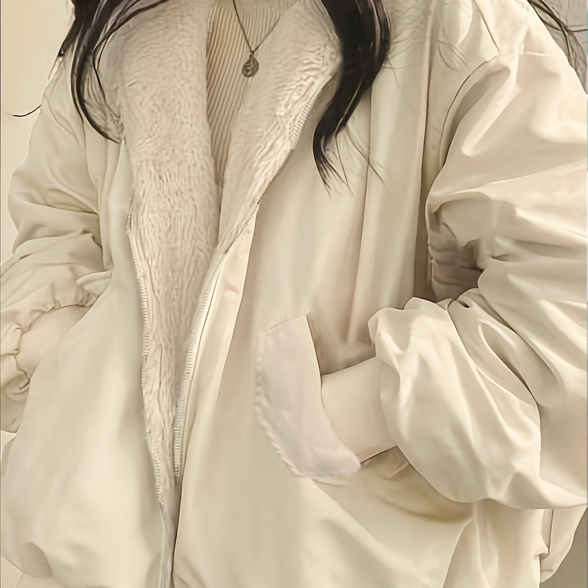 TEMU 양면 착용 가능한 두꺼운 플란넬 후드 자켓, 루즈핏 겨울용 보온 자켓