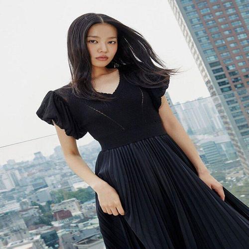 [에고이스트][캡슐]볼륨소매 주름 믹스 니트 원피스 ER3KO761