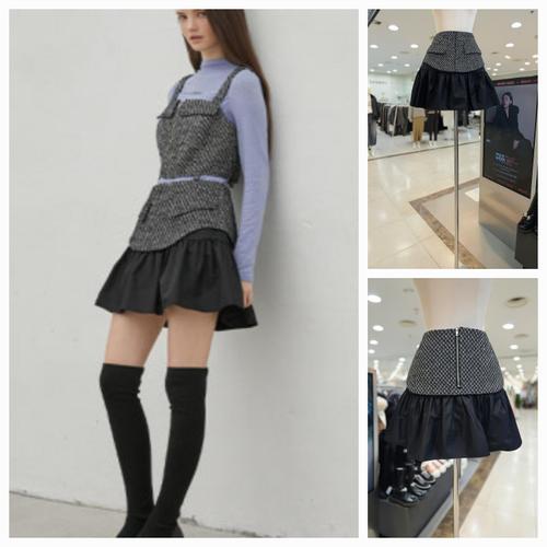 [에고이스트]셔링 플레어 트위드 믹스 미니 스커트 EQ4WS160