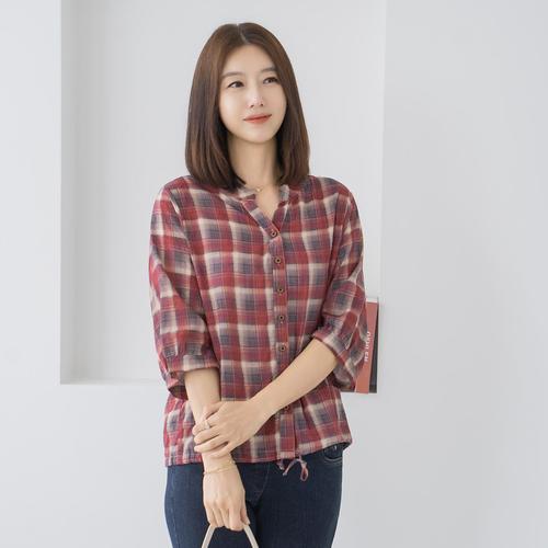 엄마옷 마담4060 체크스트링칠부셔츠-QBL2508026-