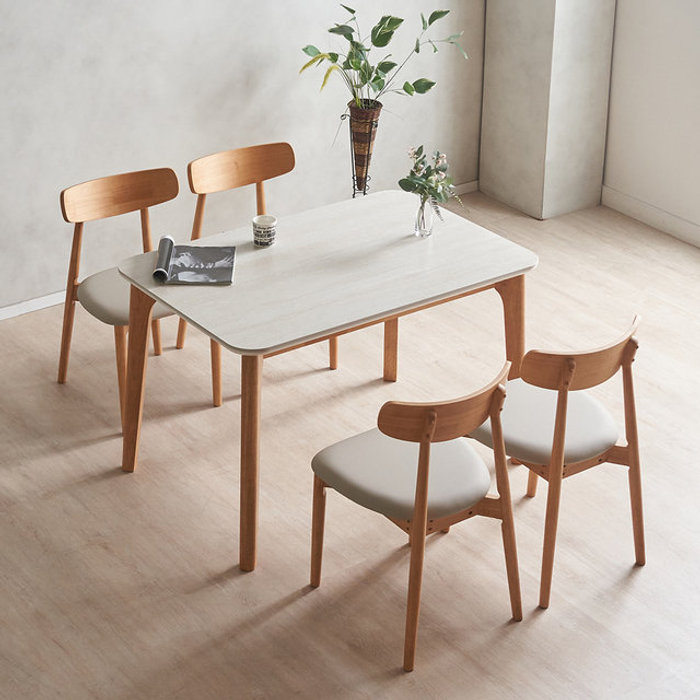 에보니아 리가 4인용 세라믹 식탁 세트 A형 1200 (테이블1200+식탁의자 A형 원목 4개)