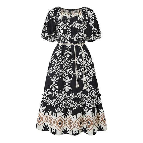 [탱커스]에스닉 벨티드 패턴 반팔 롱 원피스 (TY2OP007L0)