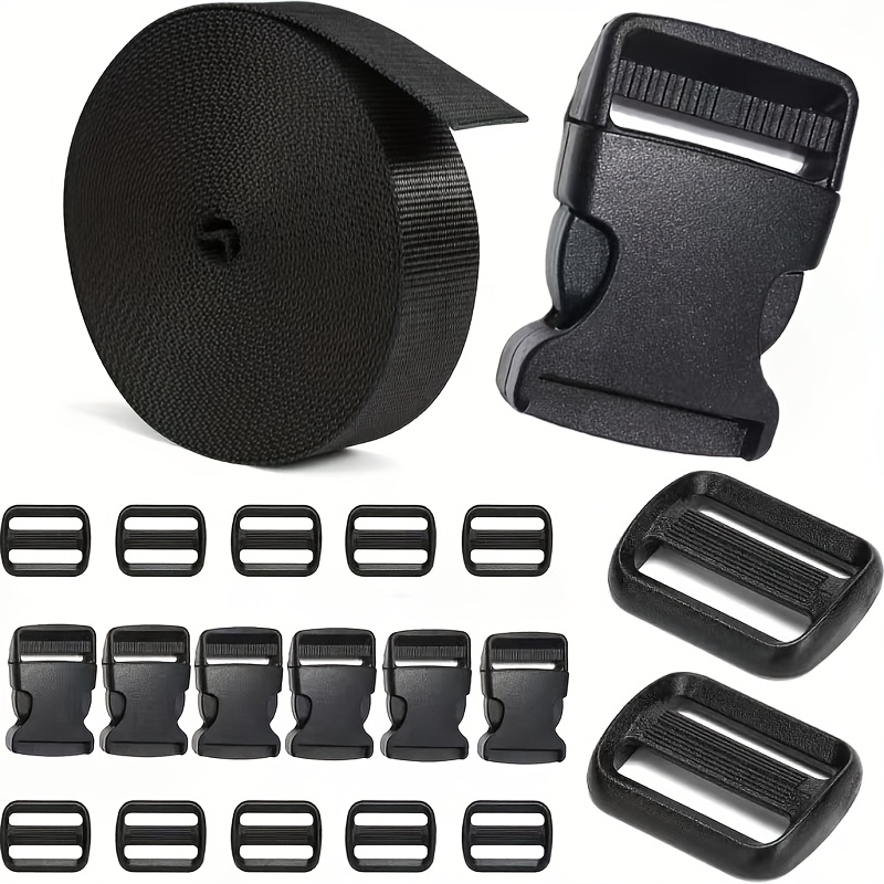 TEMU 버클 및 스트랩 세트 1인치/2인치: 4.3/21.8 야드의 두꺼운 나일론 웨빙, 헤비듀티 조절형 사이드릴리즈 플라스틱 버클, 클립, 블랙 (콤보 세트)