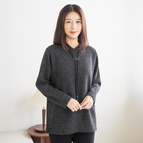 엄마옷 마담4060 레더라벨후드티셔츠-QTE2601003-