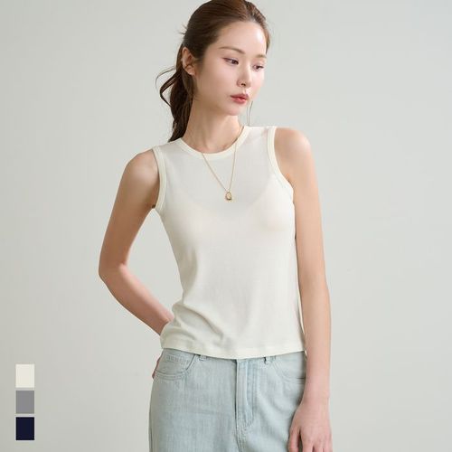 (에어핏1탄) 라운드넥 슬림핏 스판 민소매 나시