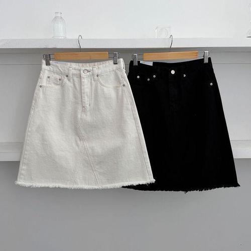 [다잇템] 여성 중간 에이라인 데님스커트 하프 진 논스판 컷오프 스커트