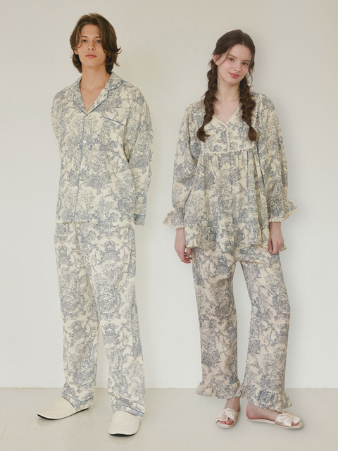 [루나루즈 스튜디오] 커플 아모르 이중거즈면 긴소매 투피스 잠옷(2C)