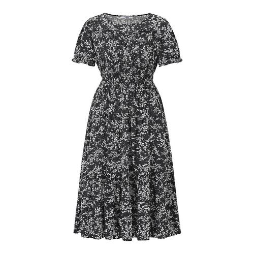 [옷자락]여자 라운드넥 반팔 허리스트랩 데일리 체형커버 롱 원피스