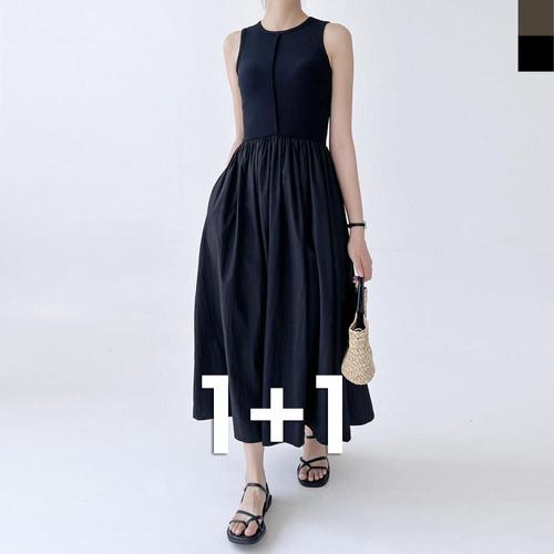 [쿠잉]라운드 셔링 3컬러 데일리 여성 롱 원피스