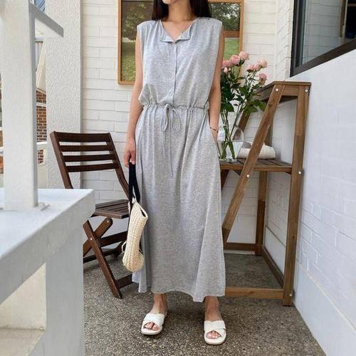 [에이치플러스몰]데님 롱 시사노 셔츠 민소매 쉬폰 뷔스티에 원