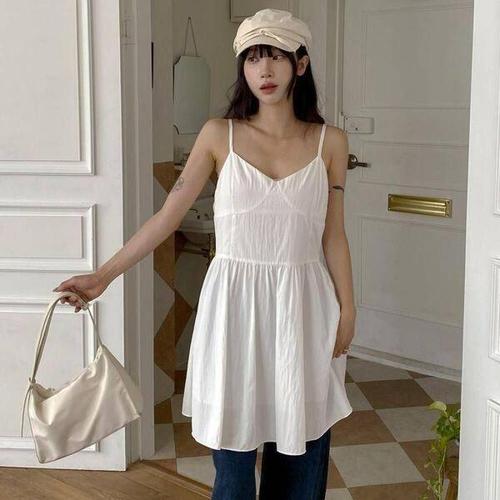 [에이치플러스몰]쉬폰 셔츠 뷔스티에 나시 롱니트 셔링 온나핏