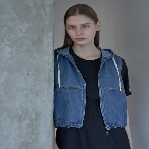 [비비올리비아] 데님 후드 베스트_VVBQC5M3372