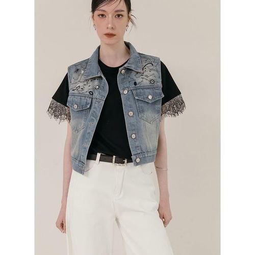 [막스까르띠지오]스팽글 레이스 배색 데님 베스트