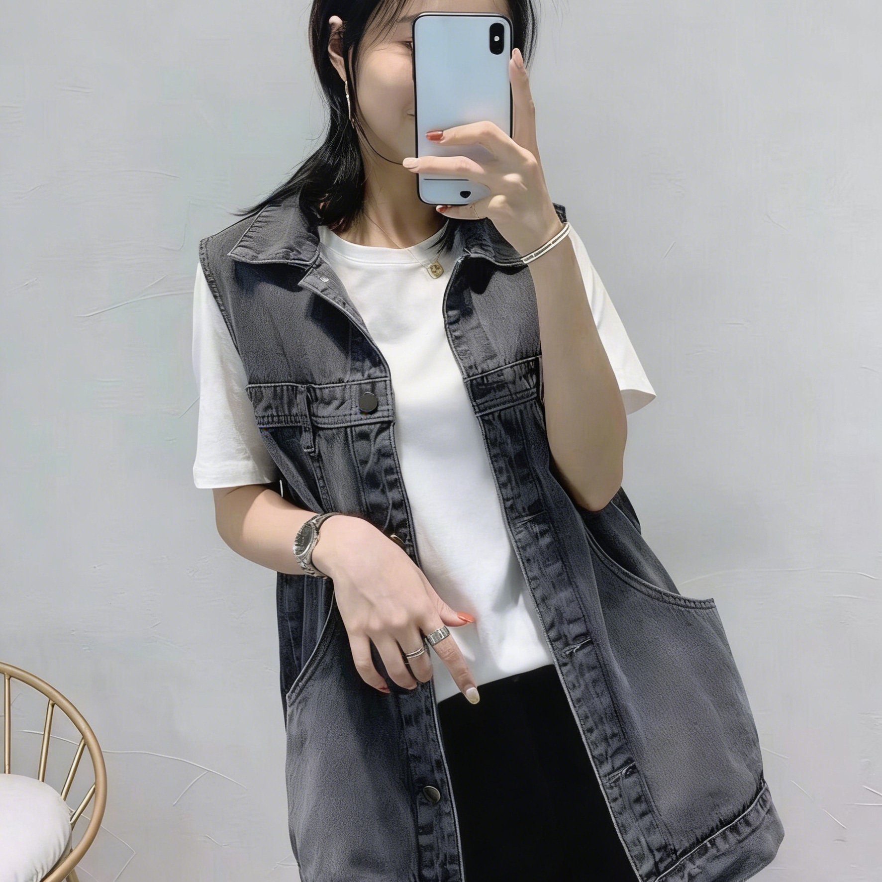 페미닌 워싱 데님 스트릿 무드 조끼 베스트 1201543