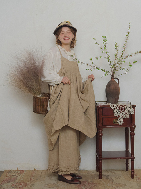 정상가:89,000원 ㅣ 에브리데이]셔링 캉캉 스트링 라운드 롱 원피스 (EB4OW009D)