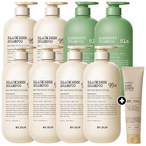 [특대용량/방송에서만] 바이아우어 블랙비어이스트 탈모샴푸 탈모 집중 패키지 (비어이스트 샴푸 1,017ml x 6 + 댄드러프 샴푸 1,017ml x 2 + 바디스크럽 150ml)