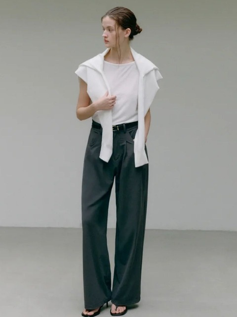 [레이블리스] 블랙 와이드 턱 트라우저