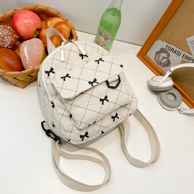 TEMU 나비넥타이 코듀로이 백팩, 일본식 출퇴근용 미니 백팩, 데일리 핸드백으로 적합, 퀼팅 텍스처, 실용적인 포켓 디자인, 조절식 어깨 스트랩 및 다중 포켓 - 스타일리시한 여성 캐주얼 가방, 학생용 심플하고 가볍고 활용도 높은 백팩