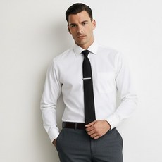 엘르 사계절 링클프리 모달 스판 솔리드 배색 화이트 레귤러핏 긴소매 셔츠 88261