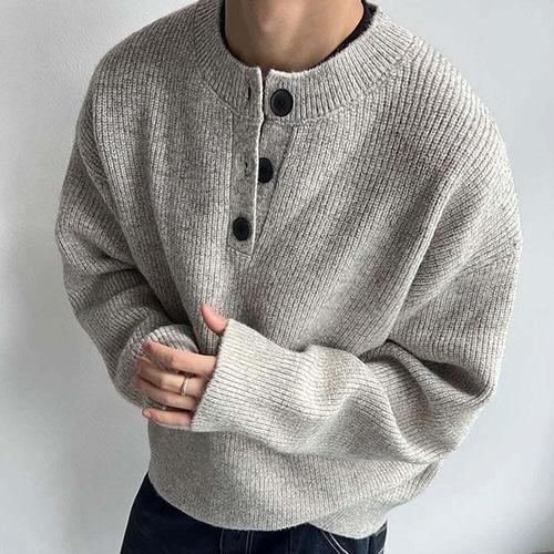 [모로엠]남성 라운드넥 단추 디테일 긴팔 스웨터 ON-KN-QWFMFR6L