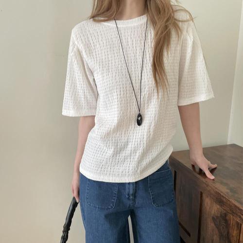 [옷자락] 여자 폴리스판 엠보 엔젤퍼프 라운드넥 반팔 티셔츠