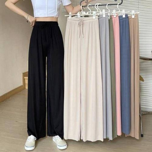 TBZ 잔솔 여성 와이드 팬츠 밴딩 플리츠 바지 냉장고 여름 WFMGQJL