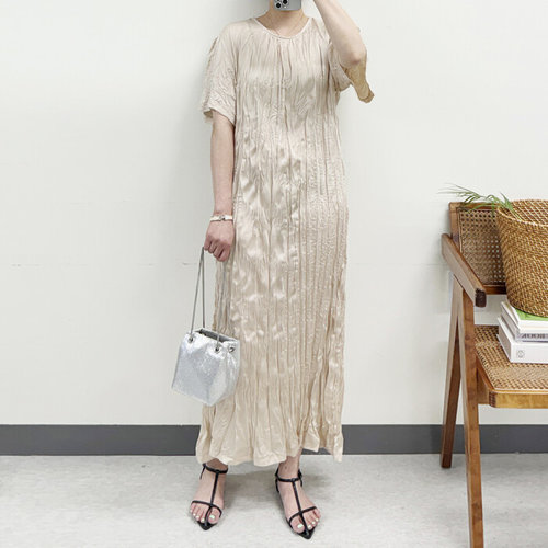 미즈큐즈 / 여름 원피스 샤이니 쭈글이 주름 링클 반팔 롱 원피스