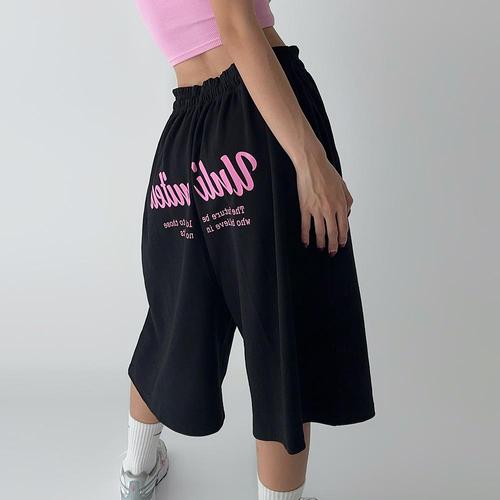 여성용 고탄성 레이스 업 드로스트링 반바지, 넓은 다리 땀 반바지, 여성 의류, 여름