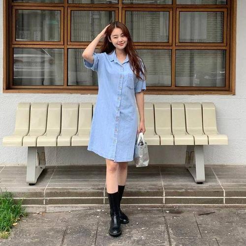 [에이치플러스몰]트위드 데님 쉬폰 하객 여름 롱니트 셔츠 주름