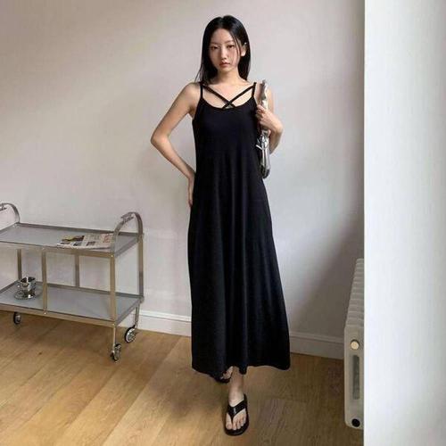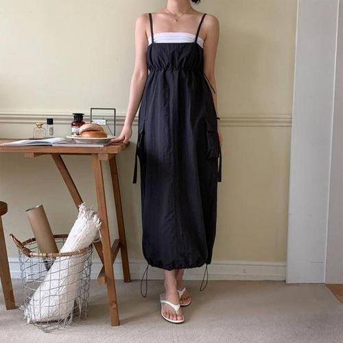 [에이치플러스몰]쉬폰 롱 뷔스티에 스트링 민데닌 여름 긴팔 온