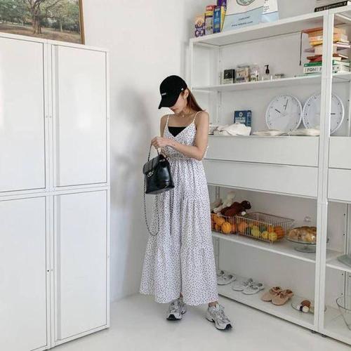 [에이치플러스몰]유니크 뷔스티에 온나핏 여름 쉬폰 배색 롱원피