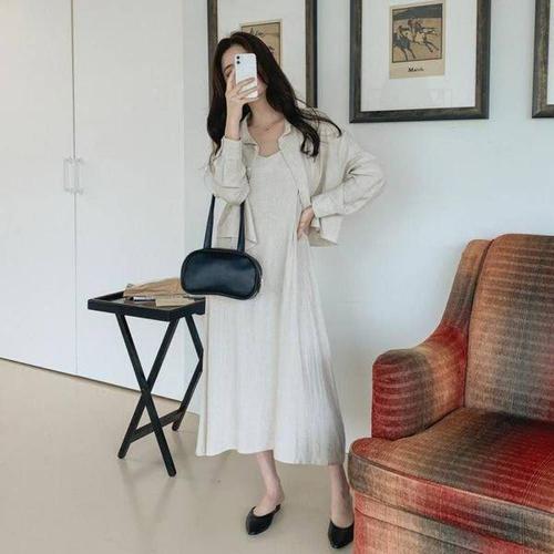 [에이치플러스몰]여성 온나핏 셔츠 쉬폰 롱니트 여름 원피스 롱