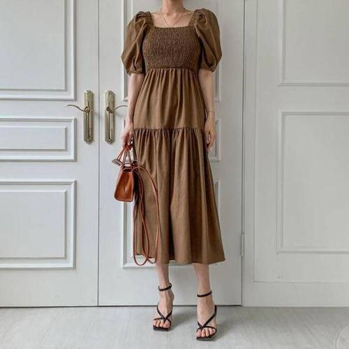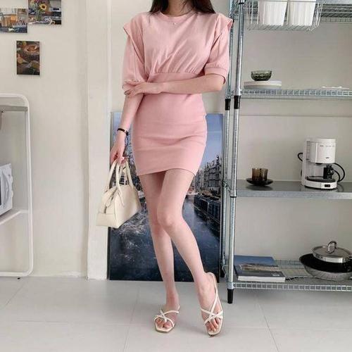[에이치플러스몰]쉬폰 크수케 뷔스티에 시보리 여름 어깨퍼프 온