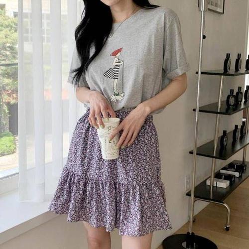 [에이치플러스몰]여름 하객 쉬폰 나염 다아하 뷔스티에 데님 라