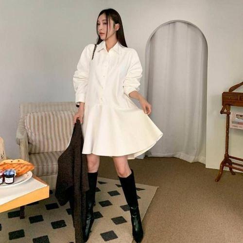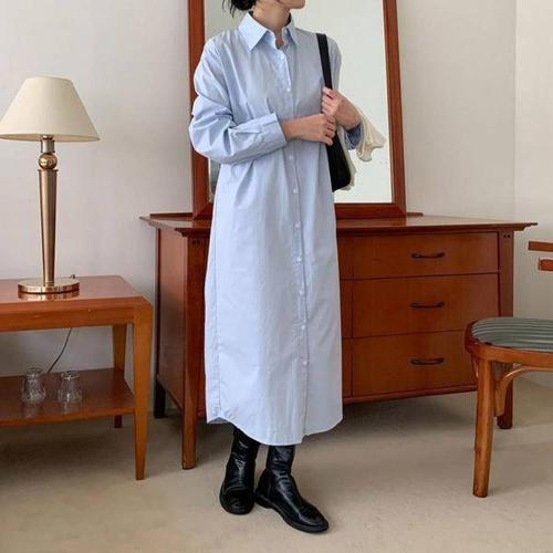 [에이치플러스몰]쉬폰 셔츠 원피스 롱 딘보에 베이직 여름 롱니