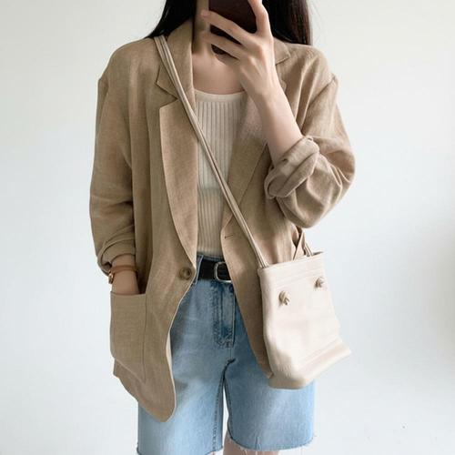 Choyur여성 여름 린넨 루즈핏 수트 자켓 클래식 단추 디자인wjj
