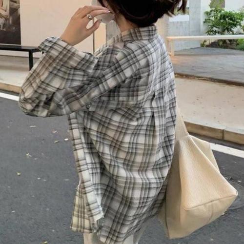 [에이치플러스몰]여성 체크셔츠 오버핏 긴팔 여리핏 여름 남방 박시핏