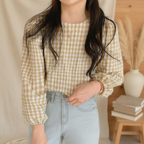 [옷자락]여성 봄 여름 간절기 체크 벌룬 블라우스