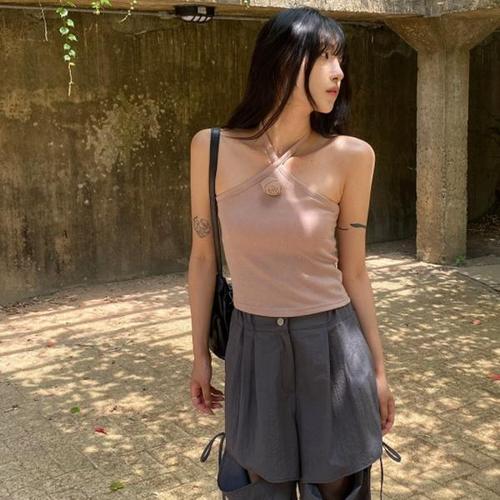 [다잇템]여자 썸머 축제룩 장미 브로치 홀터넥 튜브탑