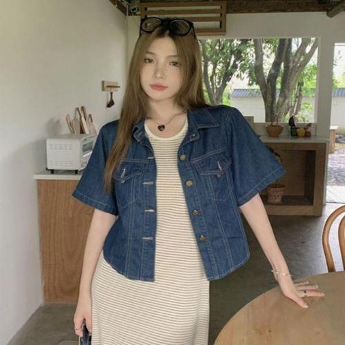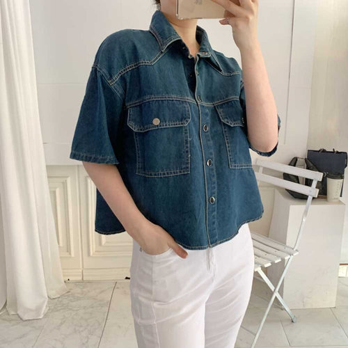 여름 청 데님 셔츠 반팔 룩 대학생 캠퍼스 자켓 (3khRO)