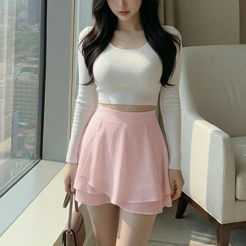 [옷자락]여자 봄여름 미니 팬츠 스커트 언발 치마