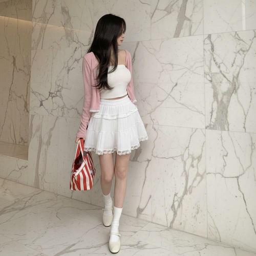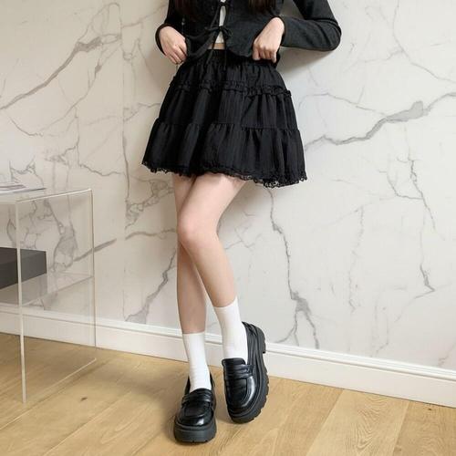 [미라클세븐]여성용 봄 여름 일상용 러블리 레이스 프릴 캉캉 미니 스커트