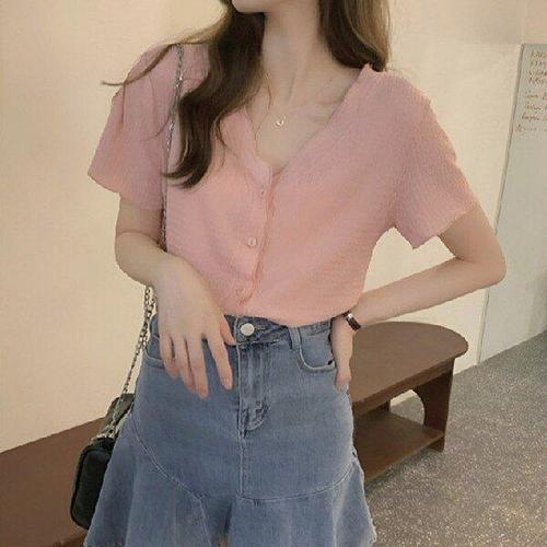 [에이치플러스몰]크롭 셔츠 반팔 자켓형 여름 단정한 데일리 숏 아우터