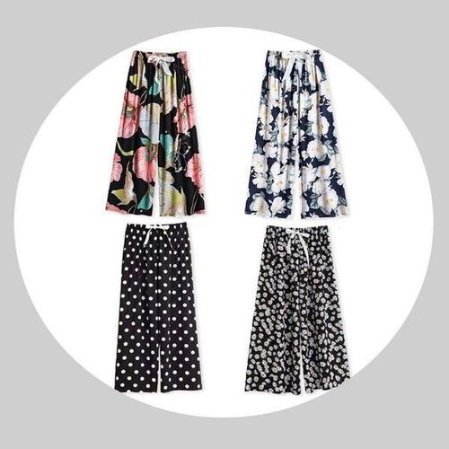 [에이치플러스몰]여성 찰랑 여름통바지 꽃무늬 와이드 밴딩바지 4종