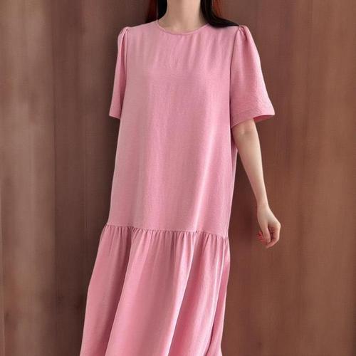 [신상오픈런]분홍색 여름 임산부 프릴 롱 원피스 반팔 빅사이즈 (33265360)