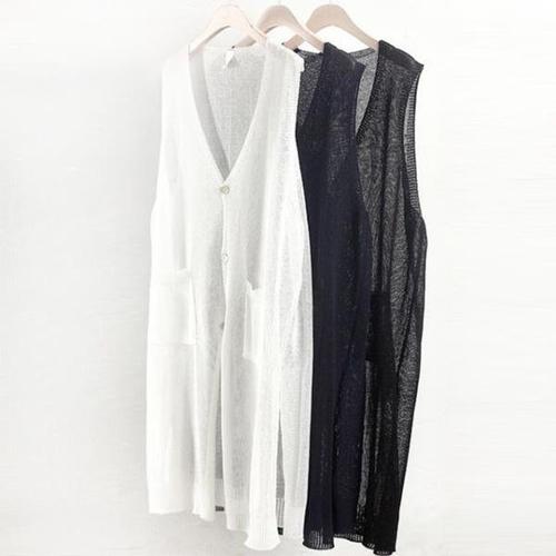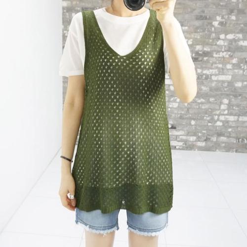 여름 시스루 브이넥 펀칭 니트 조끼 민소매 커버업